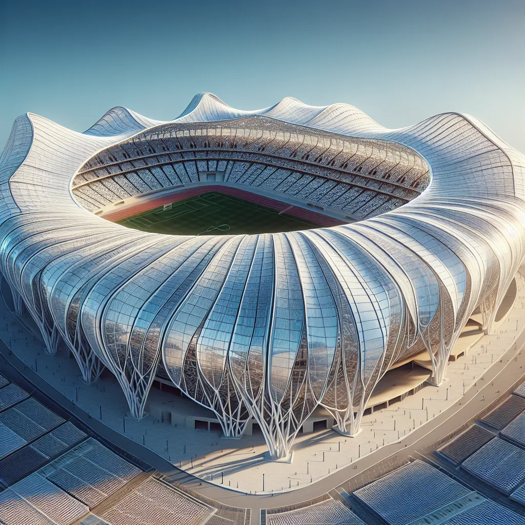 Архитектура стадиона была разработана с учетом местных климатических условий и культурных особенностей. Его фасад выполнен из стекла и металла, что придает ему современный и динамичный вид. Внутренние помещения оборудованы по последнему слову техники, обеспечивая комфорт как для спортсменов, так и для зрителей.
